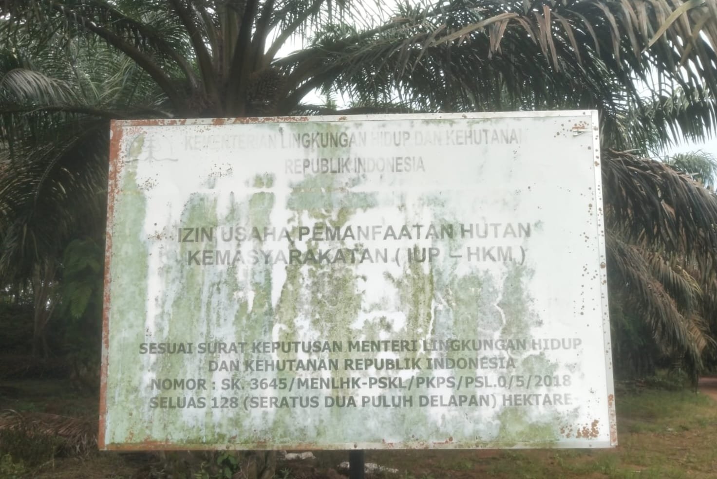 CyberNews Bangka Tengah โ€“ Kebun sawit di kawasan hutan lindung Desa Bililik, Kecamatan Namang, Kabupaten Bangka Tengah, diduga telah bertahun-tahun beroperasi tanpa tersentuh hukum. Untuk mengelabui status kawasan, dipasang plang Izin Usaha Pemanfaatan Hutan Kemasyarakatan (HKM) dengan SK No. 365/MENLHK-PSKL/PKPS/PSL.0/5/2018 seluas 128 hektare.