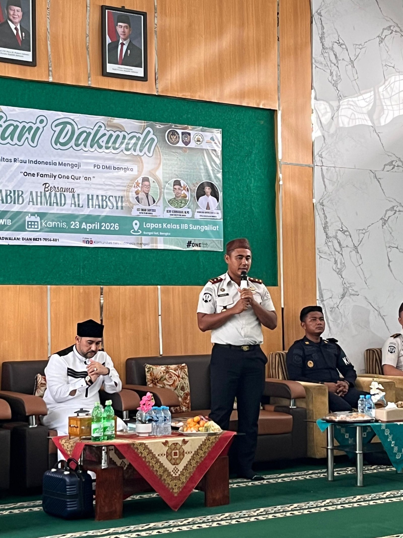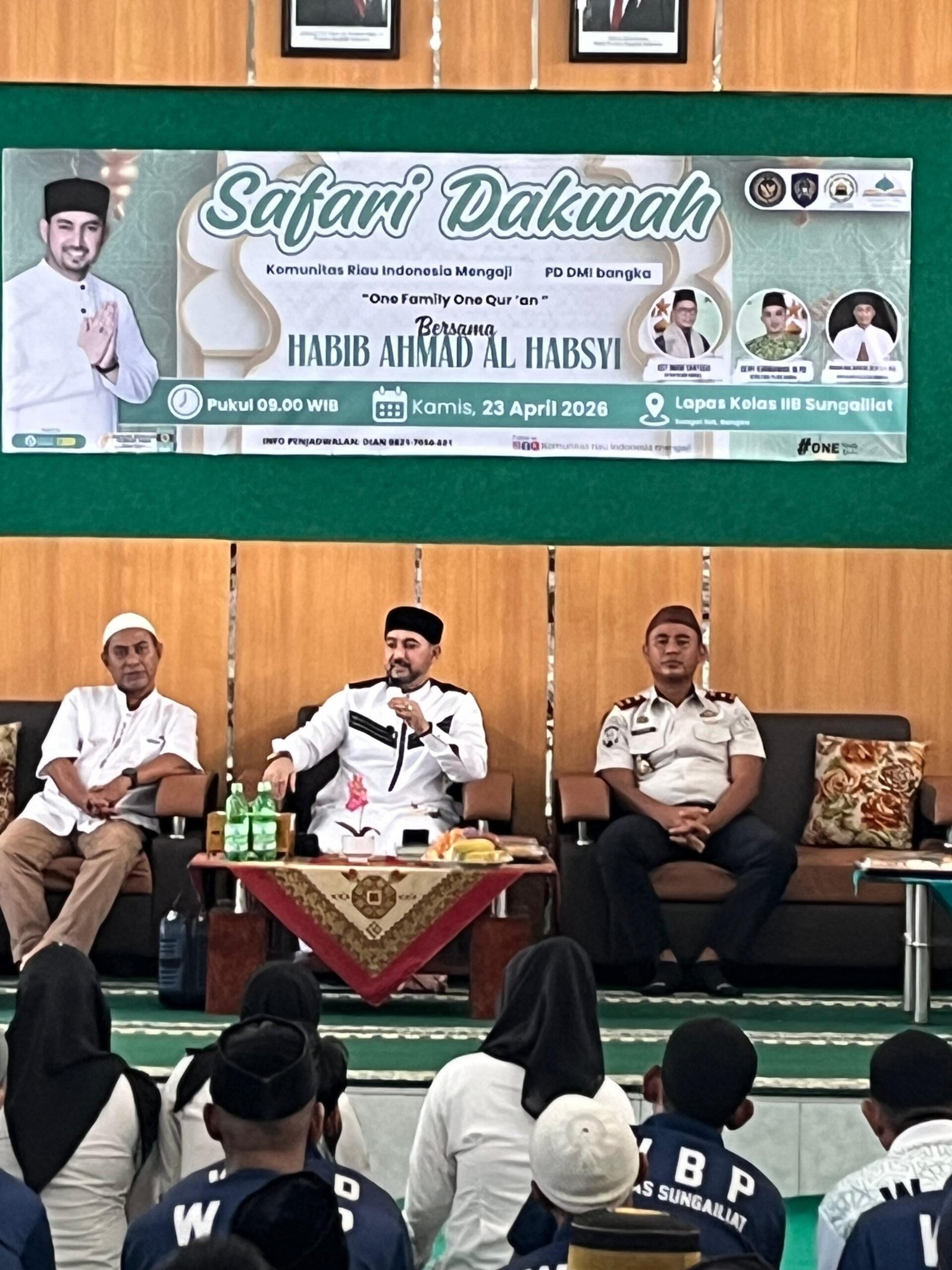 Sungailiat โ Dalam rangka program safari dakwah bertajuk โOne Family One Qurโanโ, Habib Ahmad Al Habsyi melakukan kunjungan ke Lapas Sungailiat, Kabupaten Bangka. Kegiatan ini bertujuan untuk menanamkan semangat kecintaan terhadap Al-Qurโan sekaligus memberikan pembinaan rohani bagi para warga binaan.