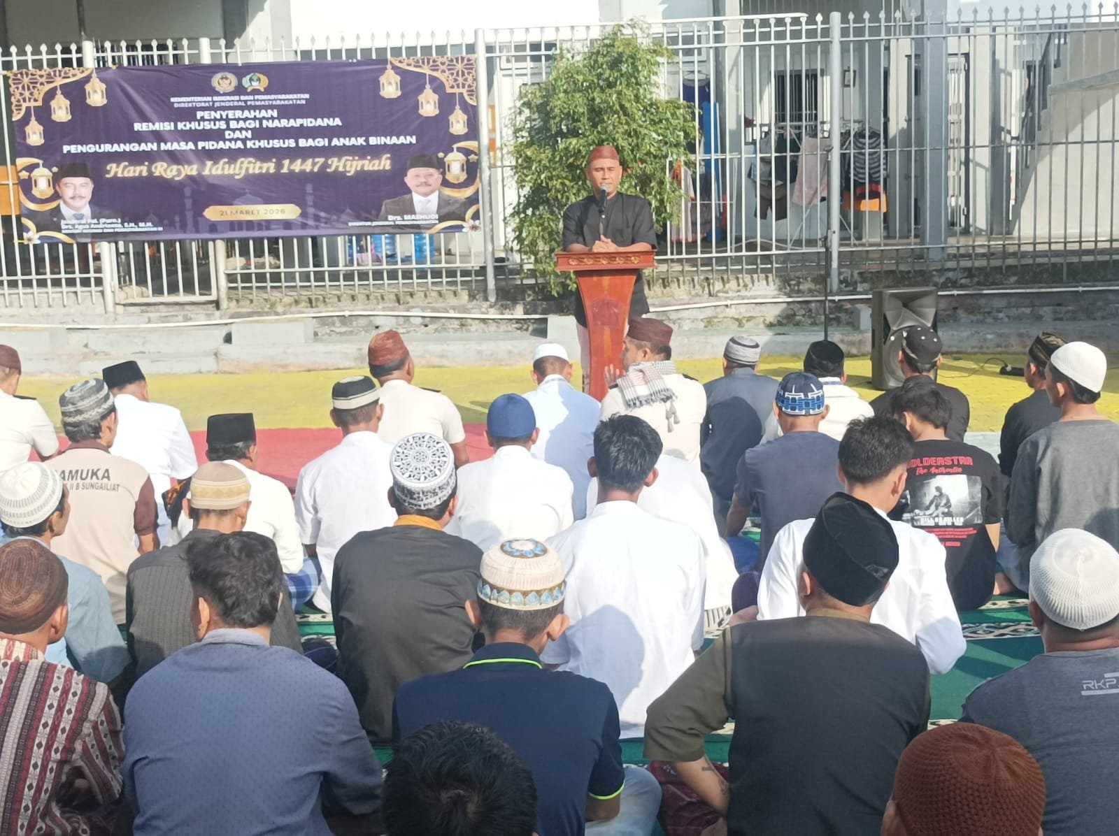 Dalam sambutannya, Kalapas menegaskan bahwa Idul Fitri bukan hanya tentang perayaan, tetapi juga refleksi diri untuk menjadi pribadi yang lebih baik. Ia juga mengajak seluruh warga binaan untuk menjaga ketertiban, meningkatkan kedisiplinan, serta menjadikan hari kemenangan ini sebagai langkah awal menuju kehidupan yang lebih bermakna setelah masa pembinaan berakhir.
