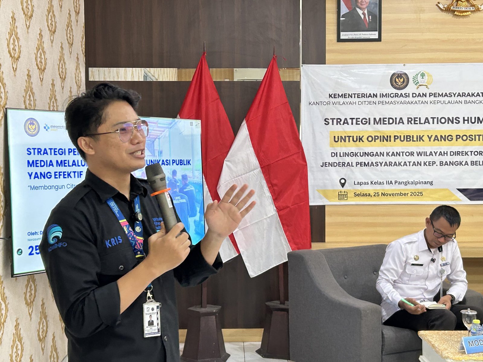 CyberNews Pangkalpinang,INFO_PAS- Dalam upaya memperkuat citra positif pemasyarakatan serta meningkatkan kualitas komunikasi publik, Kantor Wilayah (Kanwil) Direktorat Jenderal Pemasyarakatan (Ditjenpas) Kepulauan Bangka Belitung (Babel) menggelar Workshop Kehumasan yang diselenggarakan di Lembaga Pemasyarakatan (Lapas) Kelas IIA Pangkalpinang pada selasa, (25/11).
