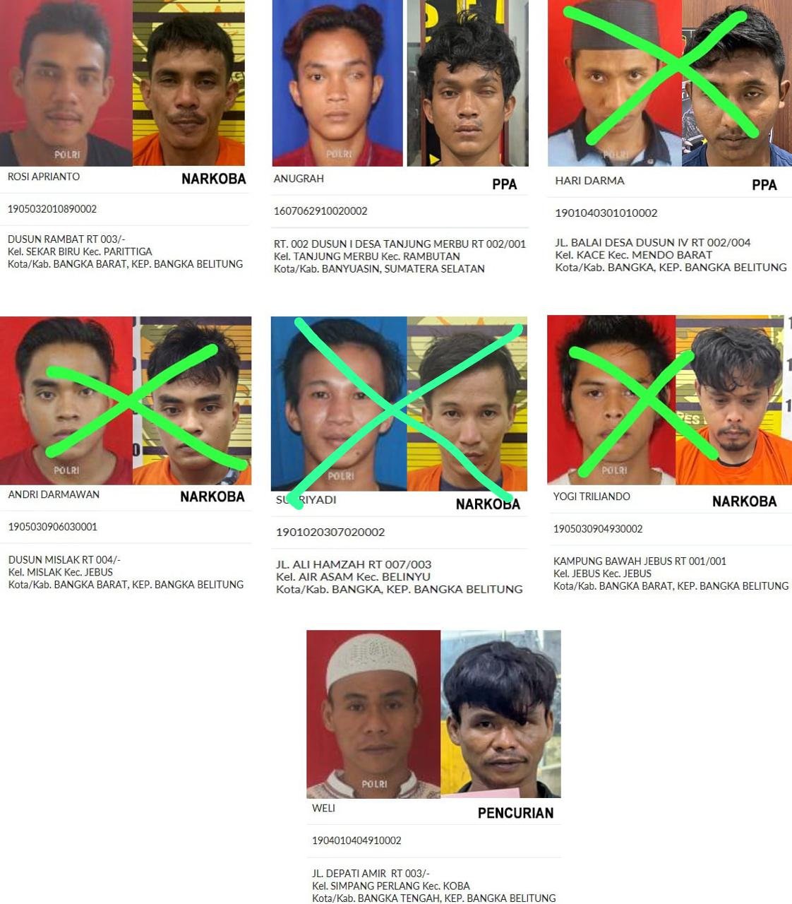 BANGKA โ€” Hingga hari ini, sebanyak lima dari delapan tahanan yang sebelumnya melarikan diri dari rumah tahanan (rutan) Polres Bangka telah berhasil diamankan kembali oleh aparat kepolisian. Sementara itu, tiga tahanan lainnya masih dalam pengejaran tim gabungan.