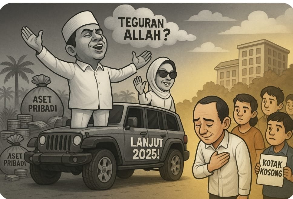 Namun yang membuat publik semakin kecewa adalah sikap Molen pascakekalahan. Tak ada kata maaf. Tak ada refleksi jujur. Yang muncul justru unggahan penuh percaya diri di media sosialโ€”karikatur dirinya dan istri di atas mobil dengan tulisan โ€œkita akan lanjut tahun depan.โ€ Disusul pamer kekayaan pribadi: kebun sawit, aset propertiโ€”seolah ingin berkata, โ€œSaya kalah, tapi saya tetap kaya.โ€
