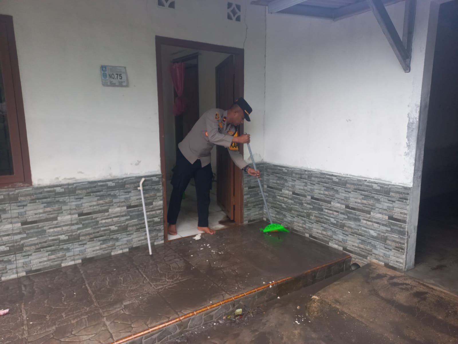 Personel Polsek Pemali dipimpin langsung oleh Kapolsek Pemali IPDA Tri Nurhadi bergabung dengan perangkat desa dan masyarakat untuk mengevakuasi perabotan, membersihkan lumpur, hingga memastikan rumah kembali layak ditempati.