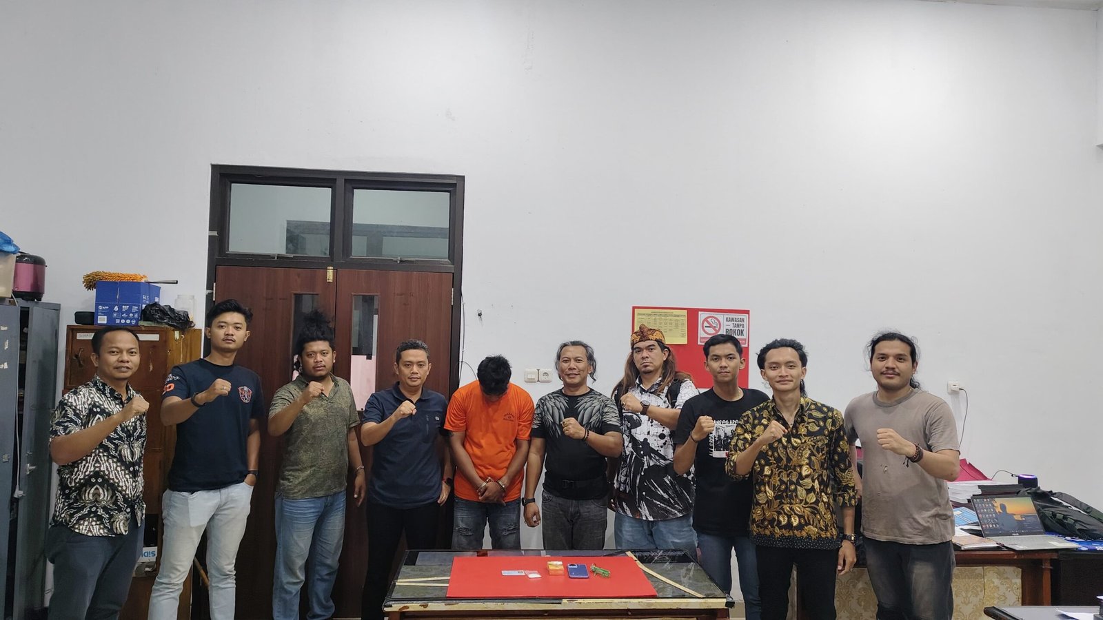 Saat dilakukan penangkapan, petugas kemudian melakukan penggeledahan yang disaksikan oleh Kepala Dusun setempat. Dari hasil penggeledahan tersebut, polisi menemukan sejumlah barang bukti yang diduga berkaitan dengan tindak pidana narkotika.