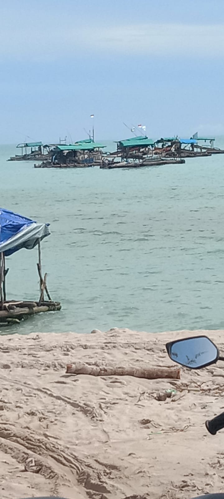 โBerdasarkan hasil pantauan tim media di lokasi, tampak puluhan unit tambang inkonvensional jenis sebuh apung (ponton) beroperasi melakukan penambangan pasir timah di pinggir laut.